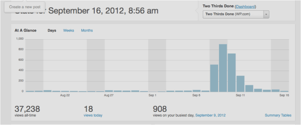 At first, I would send links to my posts to a few friends via email.   Over the years, I started putting links on sites like Facebook, Linkedin and Twitter.   Visits to my posts went from about 10 a day in 2007 to 20 in 2011.  The number of visits resulted from a combination of the number of new posts and the number of people being expose to links.  I actually posted more frequently in the beginning then I do now. Mostly because I work harder on each post now than in the beginning.