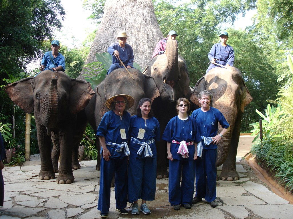 It was my wife, Deborah’s first trip to Thailand (one of many to come), and she had read that the Four Seasons had a camp where learning to ride elephants was possible. Not to ride them on some platform but by yourself, bareback, sitting on the neck of the elephant with nothing to hold on to and just balancing and giving instructions to the elephant in the Thai language. We found ourselves at this camp. We were “glamping,” but this term did not come into fashion until a few years later.